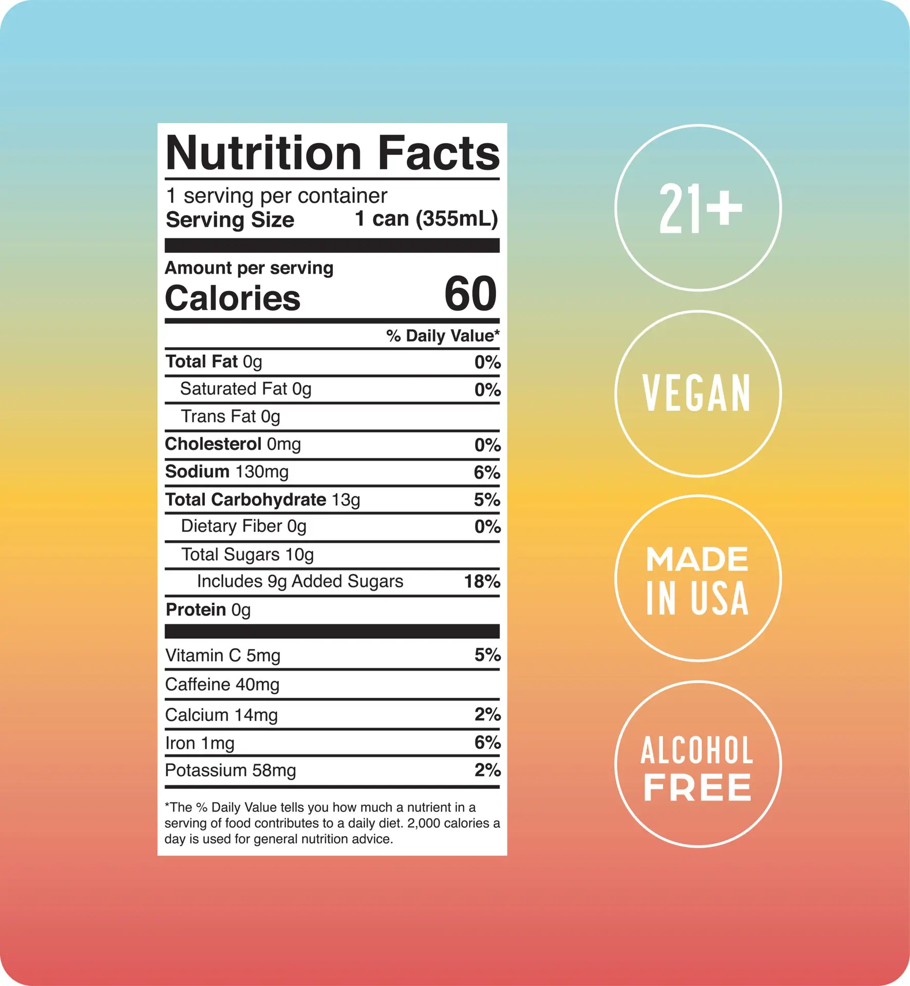 Sip and savor this subtly sweet and tropical seltzer, naturally flavored with mango puree and a hint of terpenes. With 6 mg THC, 3 mg CBD, and a splash of caffeine it provides an energizing and euphoric psychoactive experience.